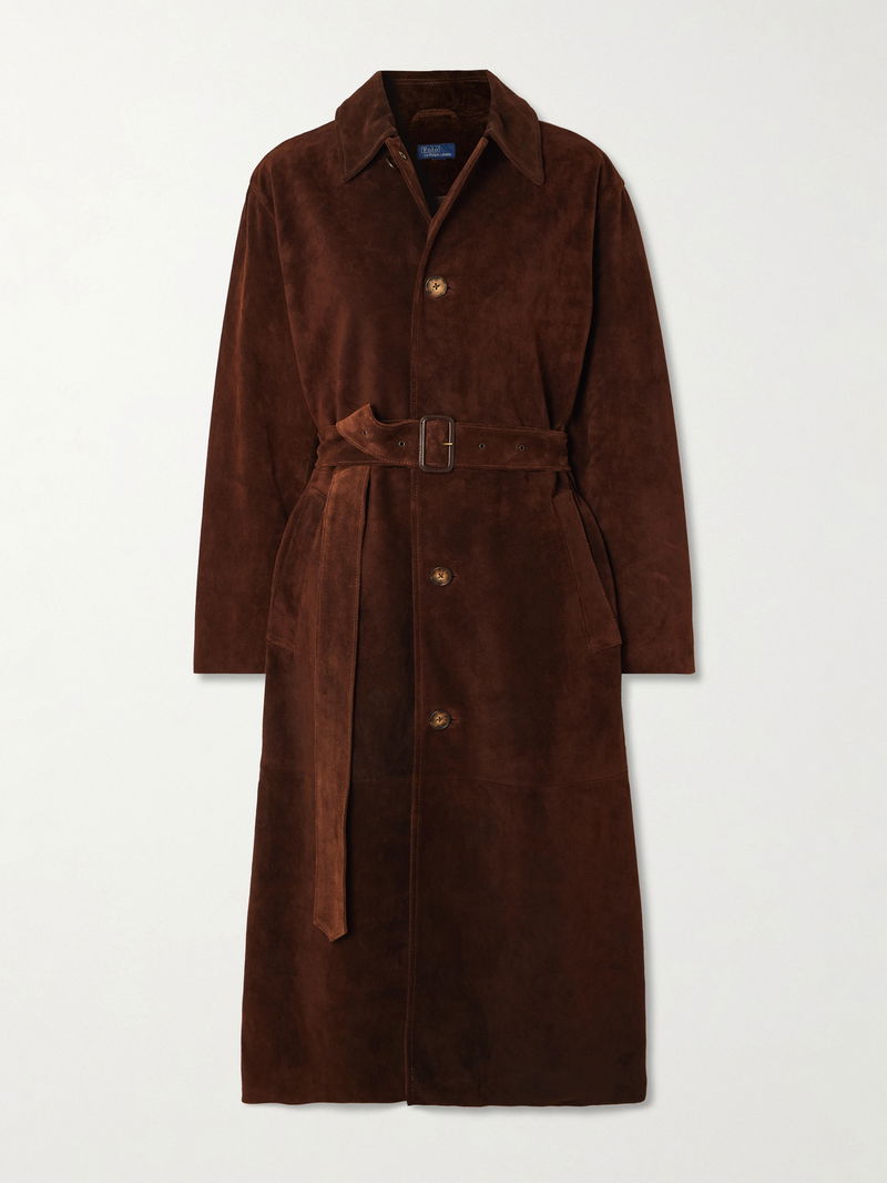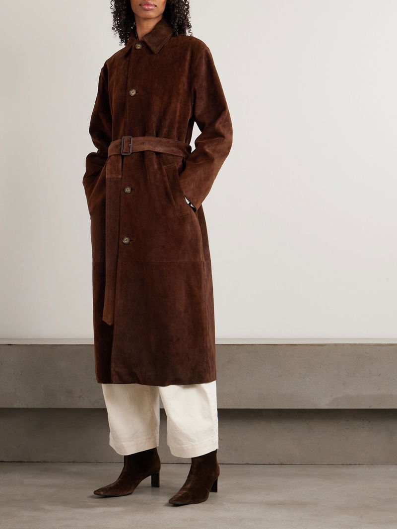 Belted Paneled Suede Coat
