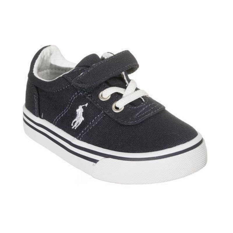 Classic style meets playground-ready comfort in these canvas low-top trainers from Polo Ralph Lauren. A timeless design featuring the iconic pony logo embroidered on the side, these trainers blend effortless cool with practical functionality. The sturdy canvas upper provides breathability while the convenient touch-strap fastening makes them perfect for active young feet. The rubber outsole with distinctive stripes offers reliable grip, making these an essential for everyday adventures.