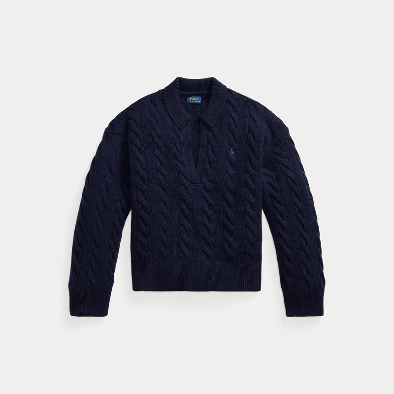Cable Wool-Cashmere Polo-Collar Jumper