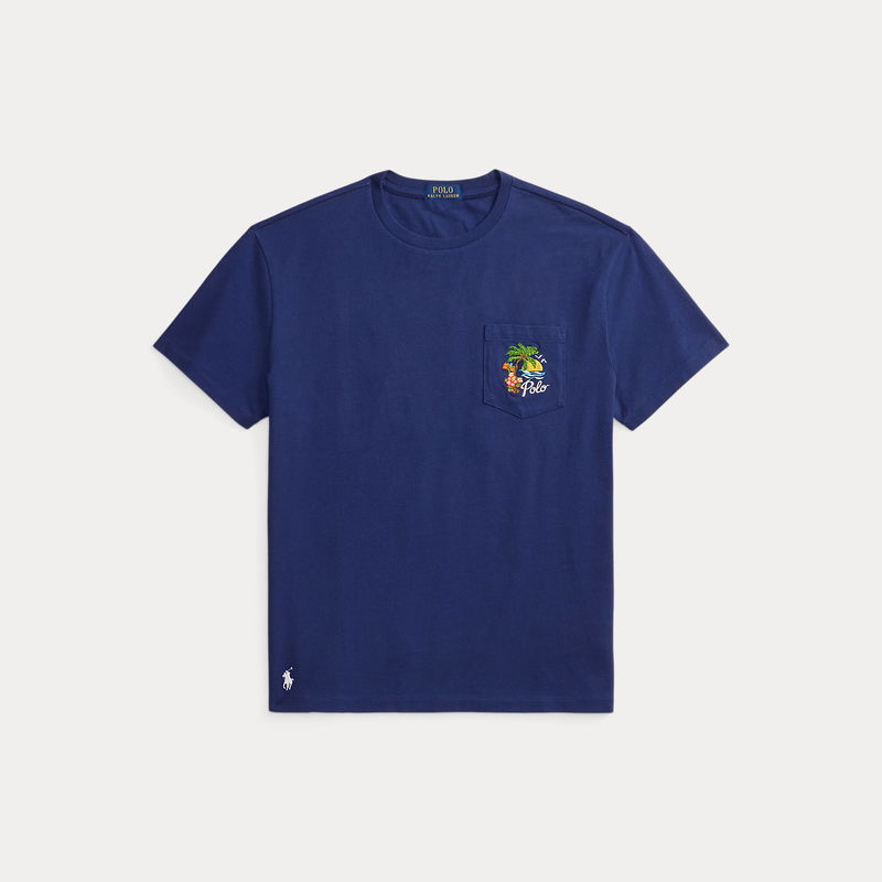 Part of the season’s collection inspired by the crystalline waters and vibrant sunsets of the Caribbean, this cotton T-shirt is embroidered with a vibrant tropical vista at the front and back.