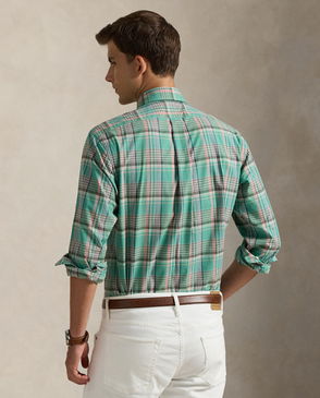 This shirt is crafted from silky cotton poplin and features an elegant Glen plaid pattern.