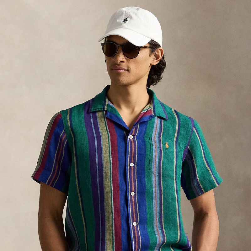 Classic Fit Striped Linen Camp Shirt