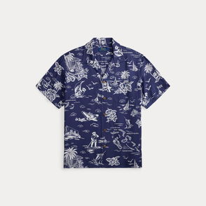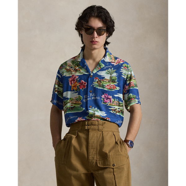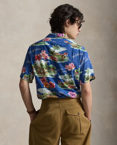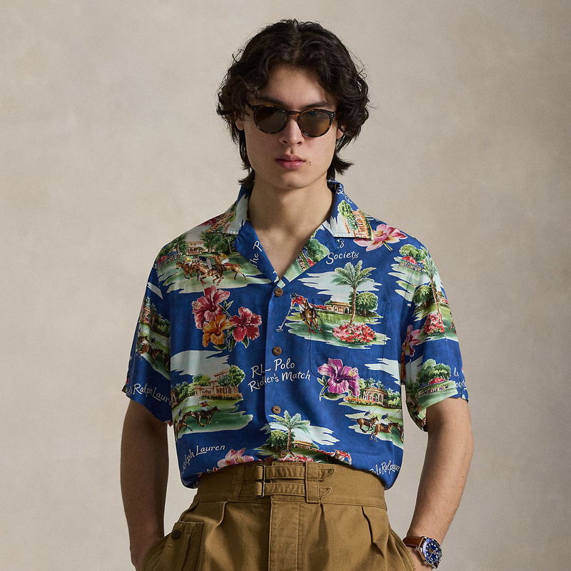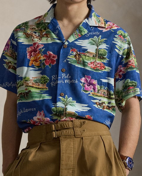 Reflecting the sophisticated spirit of the sport that inspired Polo Ralph Lauren Lauren, this lightweight camp shirt features a print of lively players and tropical flowers.