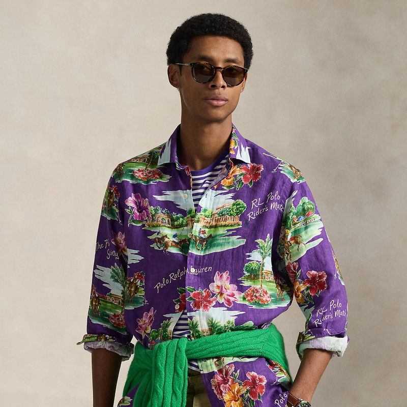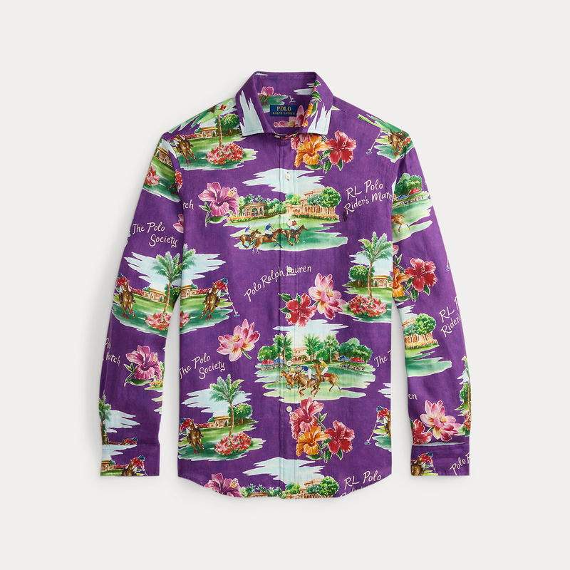 Classic Fit Tropical-Print Linen Shirt