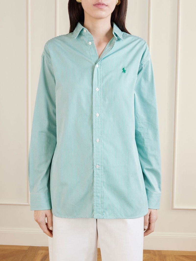 Polo Ralph Lauren’s shirt is a timeless staple you’ll reach for often. Made from crisp striped cotton-poplin in a subtle tone-on-tone palette, it’s cut in a relaxed silhouette with a classic point collar and button-fastening front. The embroidered signature pony at the chest adds an iconic finishing touch.