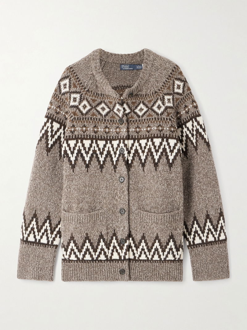 Description: Polo Ralph Lauren's cardigan offers a refined take on a classic winter staple. Knitted from a warm wool-blend, it features traditional Fair Isle motifs for a touch of heritage charm. Wear yours partially buttoned over a tee and jeans.