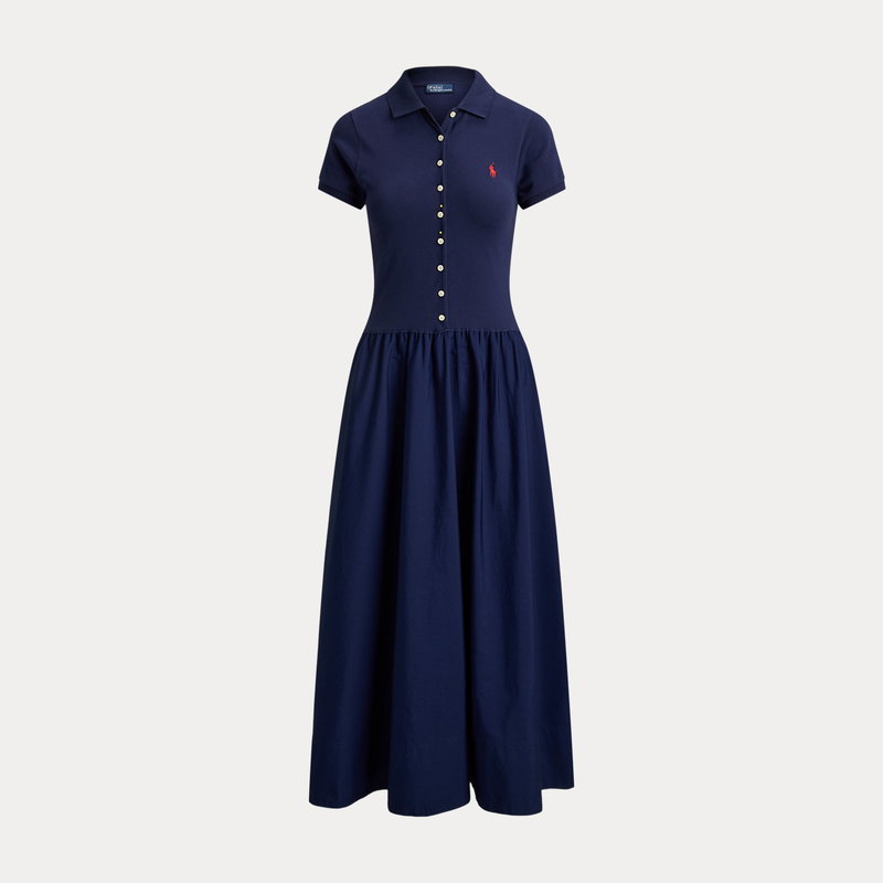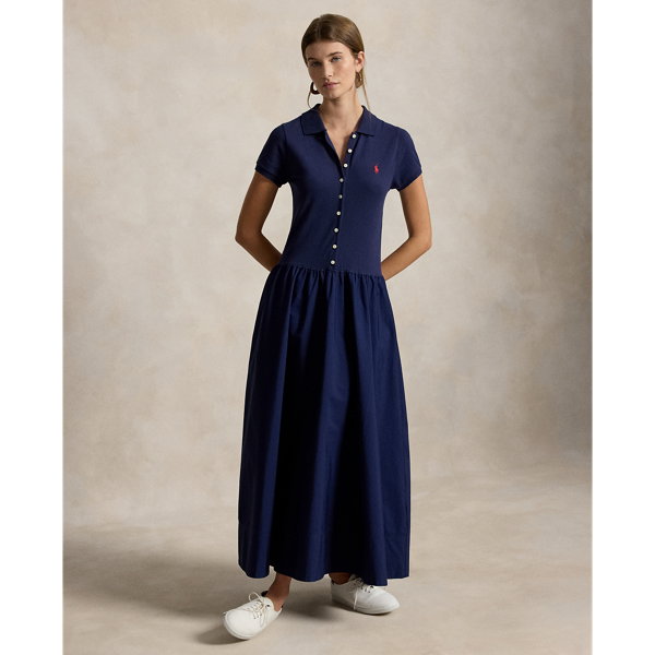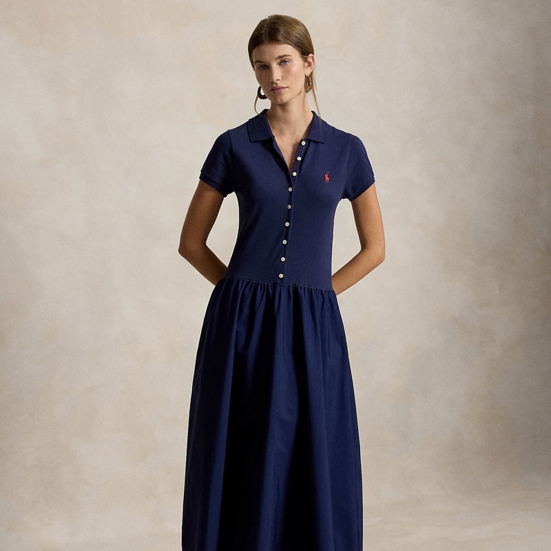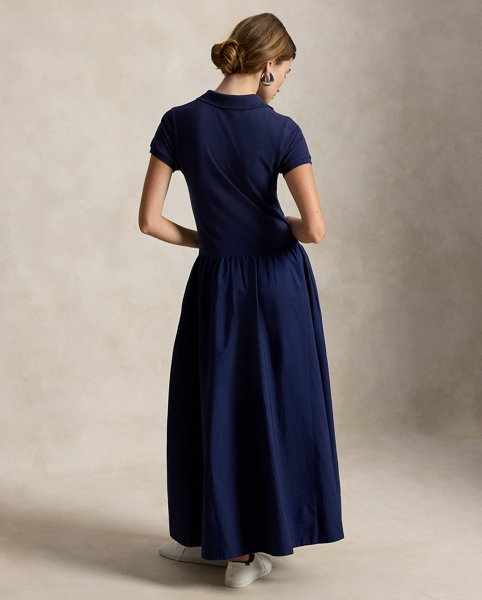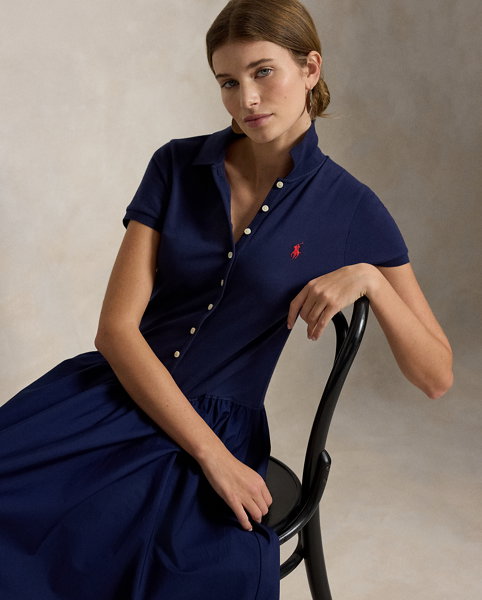 Inspired by the ease of a Polo shirt, this dress pairs a knitted mesh bodice with the crisp movement of a yarn-dyed cotton poplin skirt. Classic details, such as the flat-knit collar, buttoned placket and the signature embroidered Pony, complete the look.