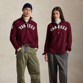 As a boy growing up in the Bronx, Mr Lauren loved going to Yankee Stadium™ to watch his hometown heroes play ball. This unisex oxford shirt celebrates Mr Lauren's long-standing love of the Bronx Bombers™ and the game of baseball with a New York Yankees™ logo patch. It is rendered in our iconic Big Fit from the '90s and finished with our signature embroidered Pony.