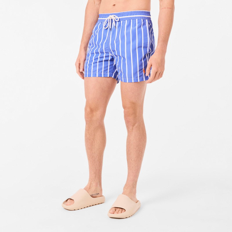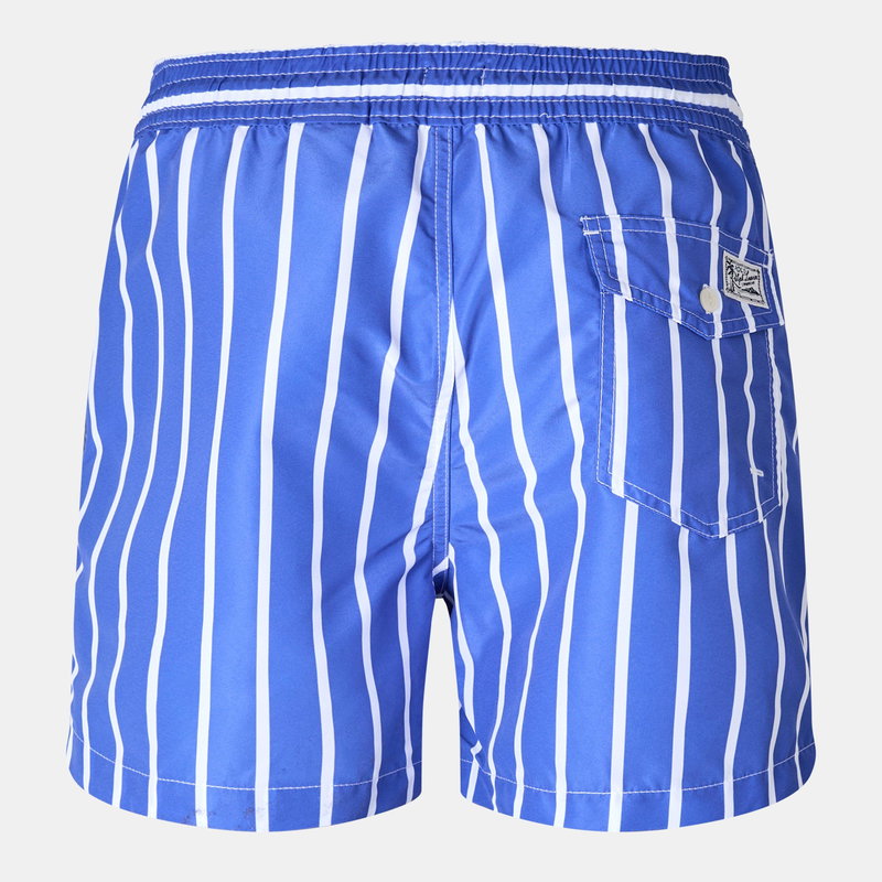 Polo Ralph Lauren's Traveller Stripe Swim Shorts pair classic poolside style with practical design elements ideal for beach days and summer holiday getaways. The streamlined cut features contrast stripes and quick-drying fabric for comfort both in and out of water, making this casual designer swimwear bottom an essential swim trunk for any wardrobe.