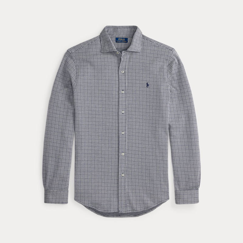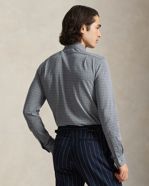 Plaid Jersey Spread-Collar Shirt