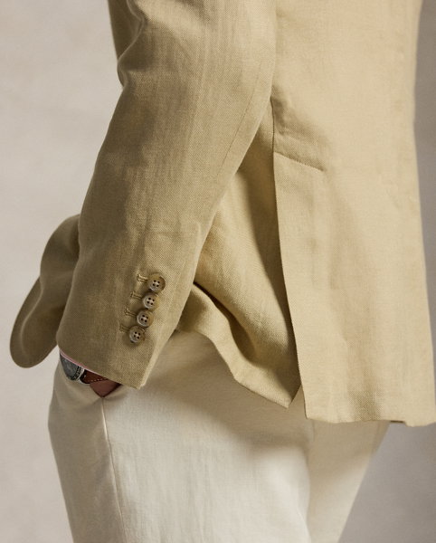This version is expertly tailored with a bespoke linen-blend twill that is woven with a touch of wool.