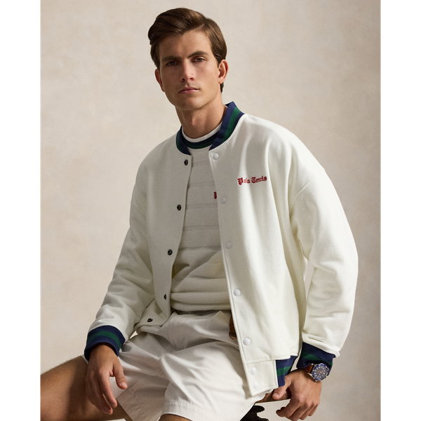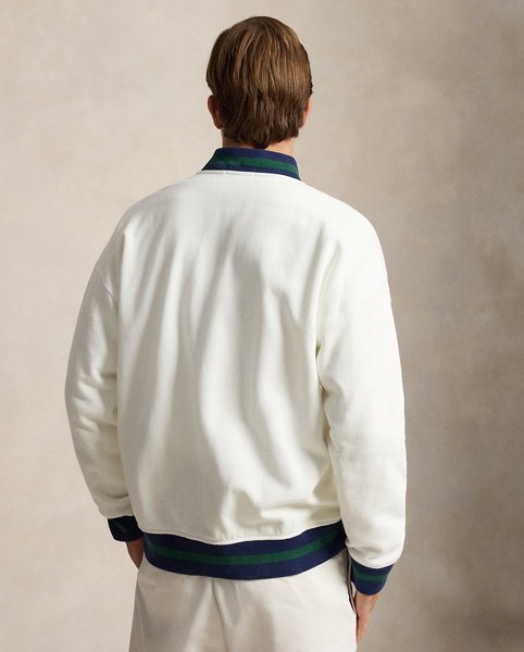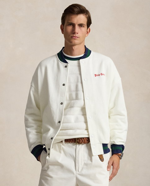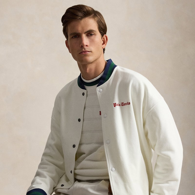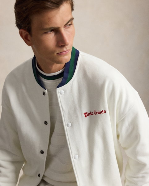 With its rib-knit baseball collar, "Polo Tennis" embroidery and angled pockets, this cotton-blend layer is inspired by a jacket from the 1992 Polo Golf line.