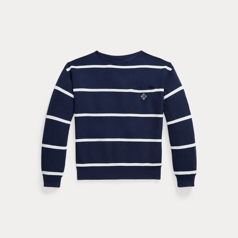 To create this jumper, we’ve reinterpreted our iconic mesh fabric with fine-gauge cotton yarns. A classic striped pattern and boatneck silhouette give it a nautical-inspired look.