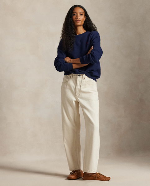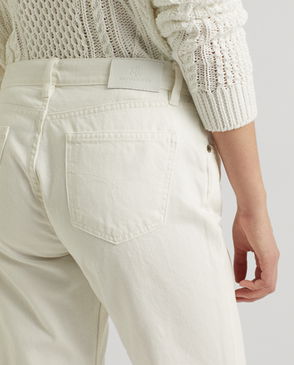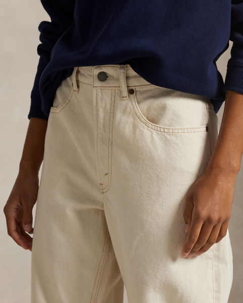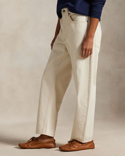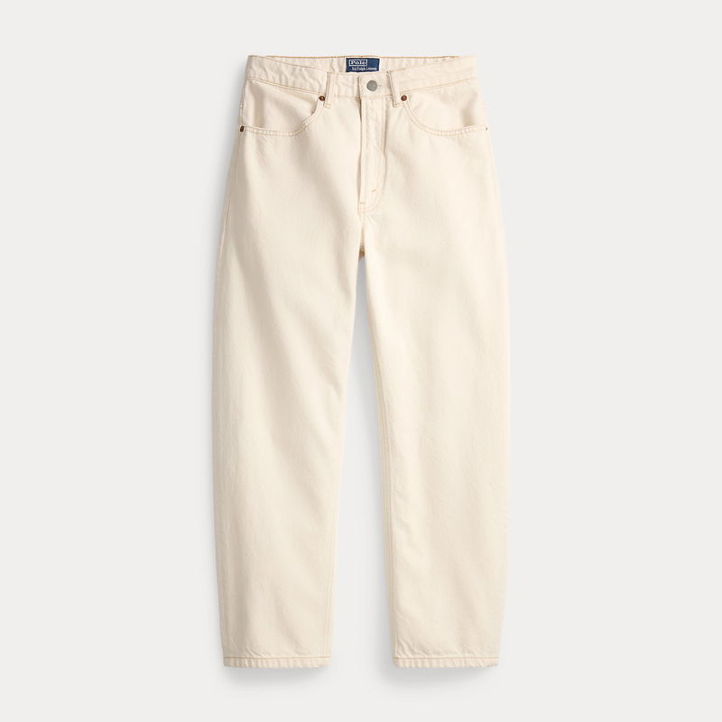 Washed for a natural ecru shade and soft hand, this version of the Relaxed Tapered jean is crafted with non-stretch cotton denim in a medium weight and features a defined twill line.