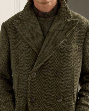 This version of the classic balmacaan is crafted in Italy from Glen plaid tweed that's woven with linen and tussah silk. It reverses to a stretch cotton poplin side that is developed with water-repellent properties.