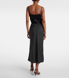 Lustrous silk charmeuse and a knee-grazing A-line silhouette give this skirt an effortless, elegant look.