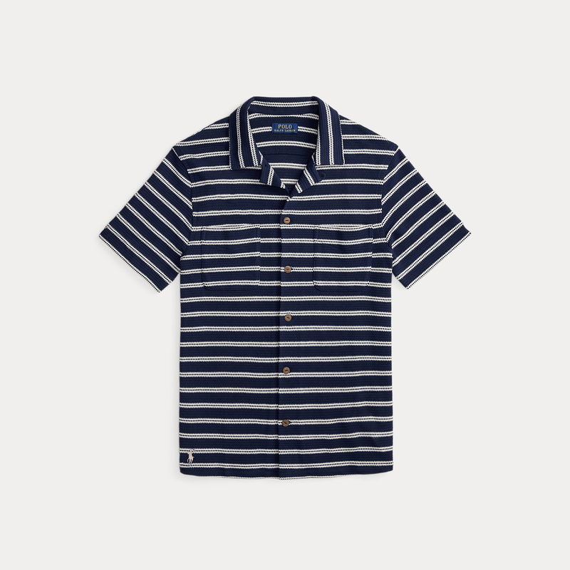 Striped Pointelle-Jersey Camp Shirt