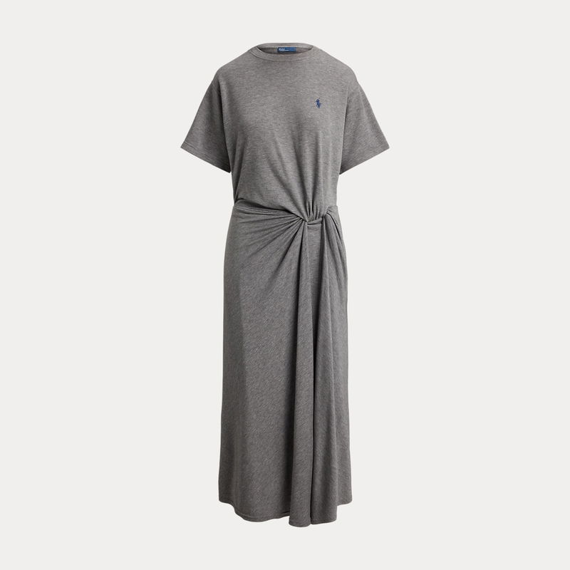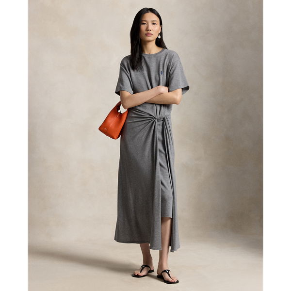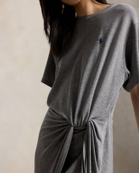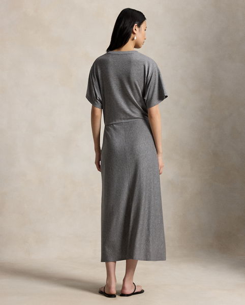 Inspired by the classic crewneck tee, this dress is made with fluid stretch-blend fabric and features a relaxed bodice with a shirred twist detail at its fitted waist.