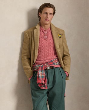 The distinctive patterns that define the classic Aran jumper – a style favoured by 19th-century Irish fishermen for its unparalleled warmth and hard-wearing construction – were originally knit to signify the wearer's family clan. Polo’s version, which is made with a wool-and-alpaca hair blend, symbolises the wearer’s membership in a different type of group: those who appreciate form, function and enduring style.