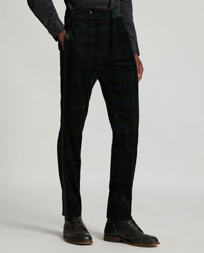 These flat-front trousers are masterfully tailored in Italy using wool barathea that was custom-developed for Ralph Lauren Lauren.