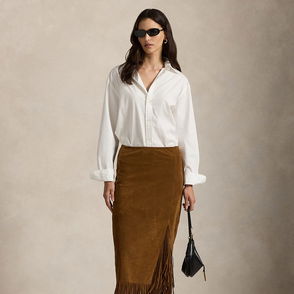 The Polo Ralph Lauren Lauren x Naiomi Glasses collection honours Navajo heritage and centuries-old weaving traditions. Naiomi Glasses is a seventh-generation Diné (Navajo) textile artist and designer whose work reflects the beauty of her Indigenous culture. Mirroring her personal weaving journey, the collection transitions from earthy, neutral hues to a crescendo of bright colours in this second drop, additionally influenced by her love of skateboarding. Inspired by one of Naomi's favourite skirts, made by a local artisan, this version is crafted with cotton and features an allover motif based on springtime flowers from the Diné landscape. Its lower shirred tier features contrast rickrack trim, a detail familiar to vintage Navajo skirts.