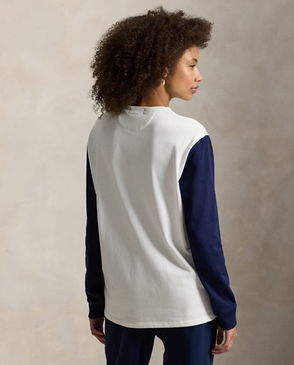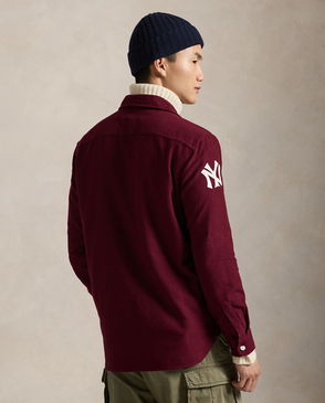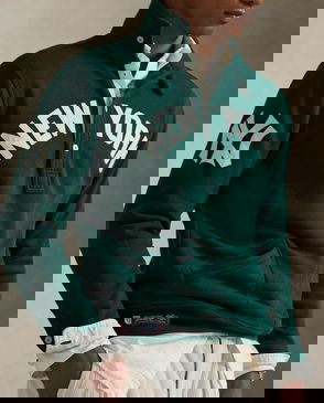 As a boy growing up in the Bronx, Mr Lauren loved going to Yankee Stadium™ to watch his hometown heroes play ball. This unisex rugby shirt celebrates Mr Lauren's long-standing love of the Bronx Bombers™ and the game of baseball with a New York Yankees™ logo patch. Made from striped cotton jersey, it features our signature embroidered Pony and appliqués spelling out "New York".