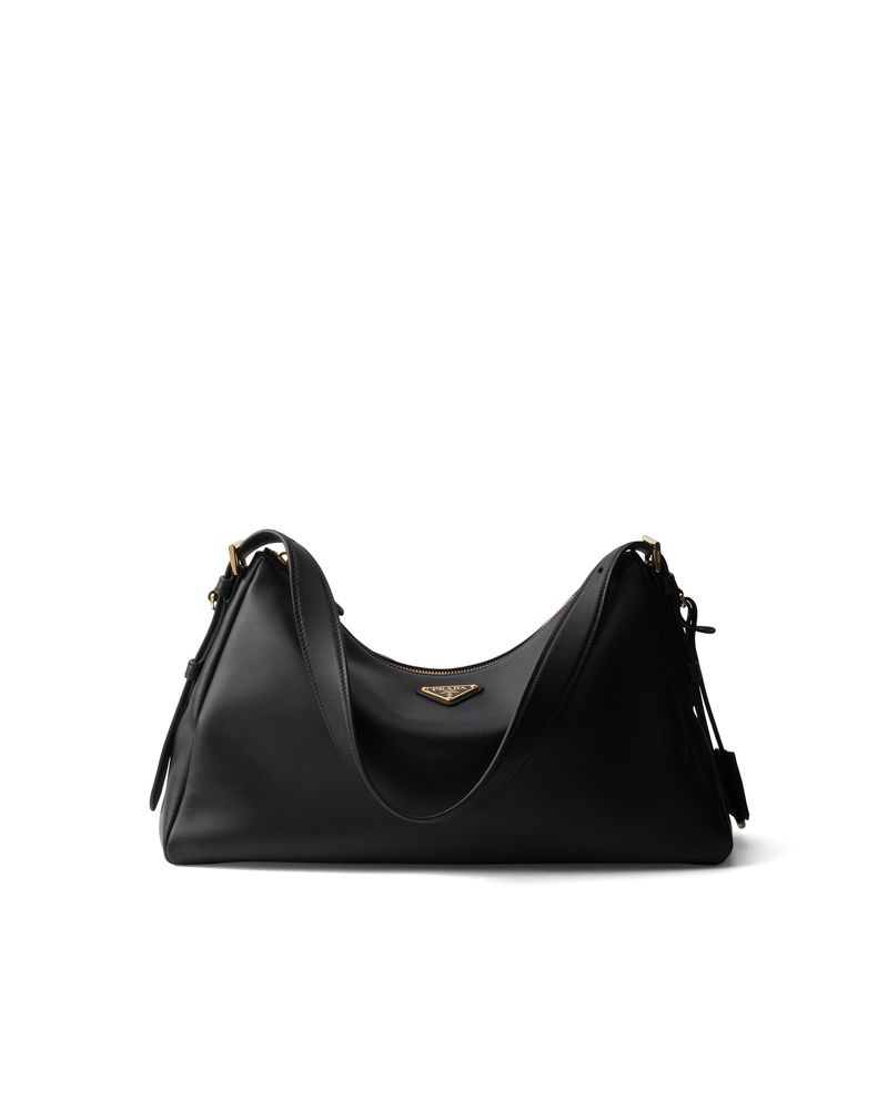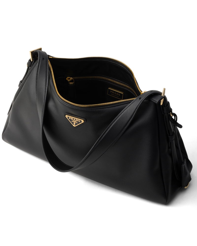 Aimée Large Leather Shoulder Bag, Woman, Black