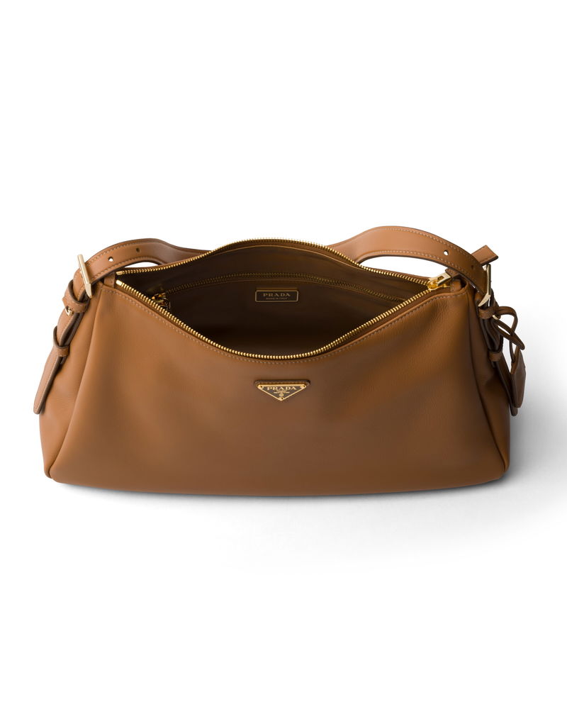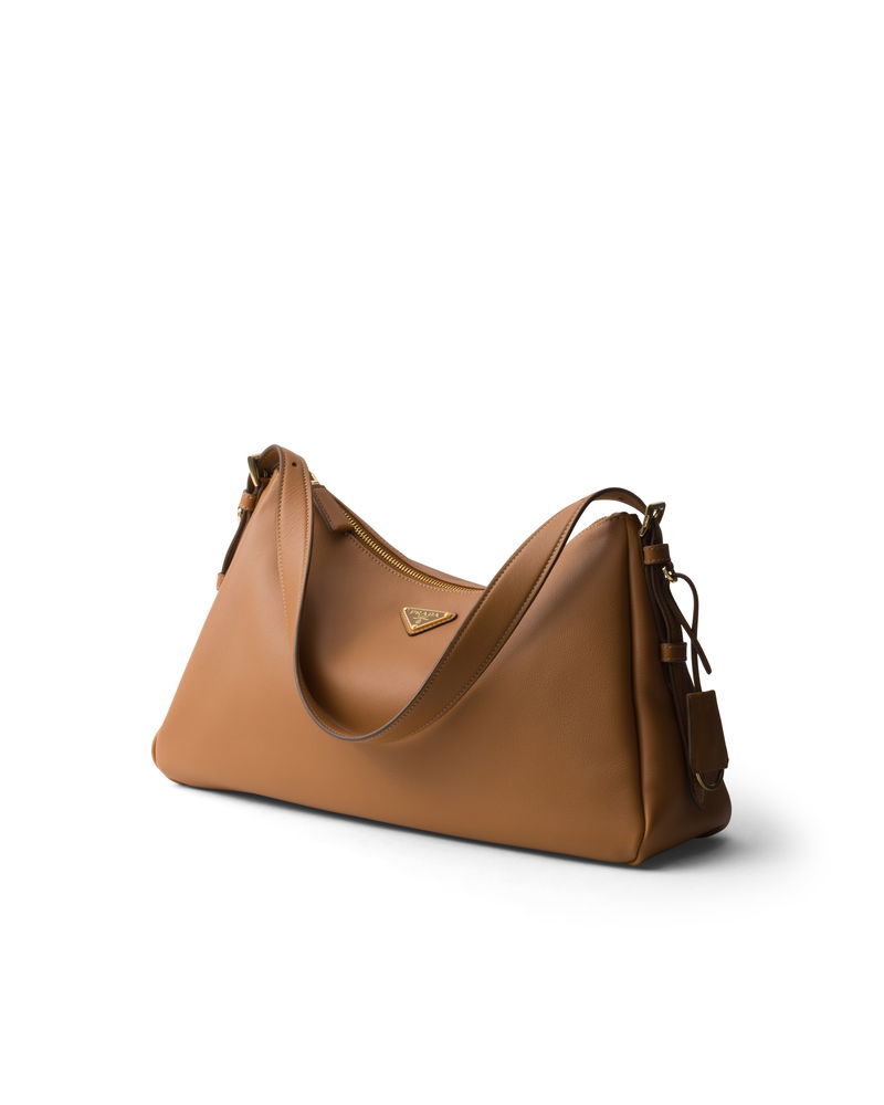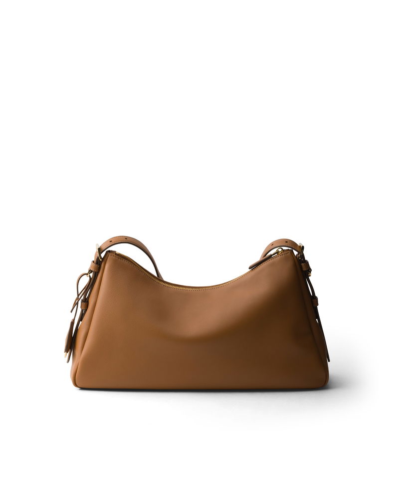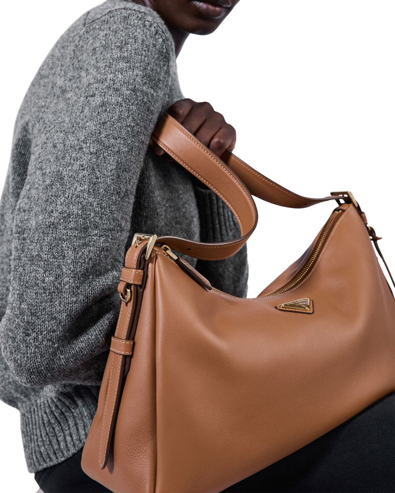 Aimée Large Leather Shoulder Bag, Woman, Caramel