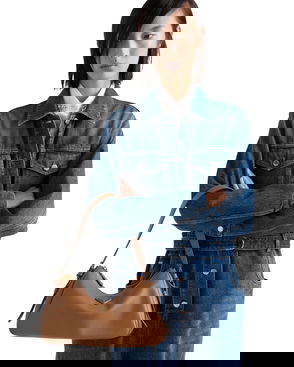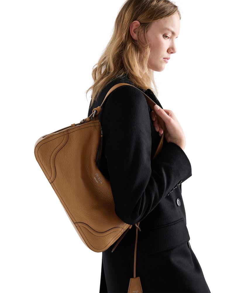 Aimèe Large Leather Shoulder Bag, Woman, Caramel