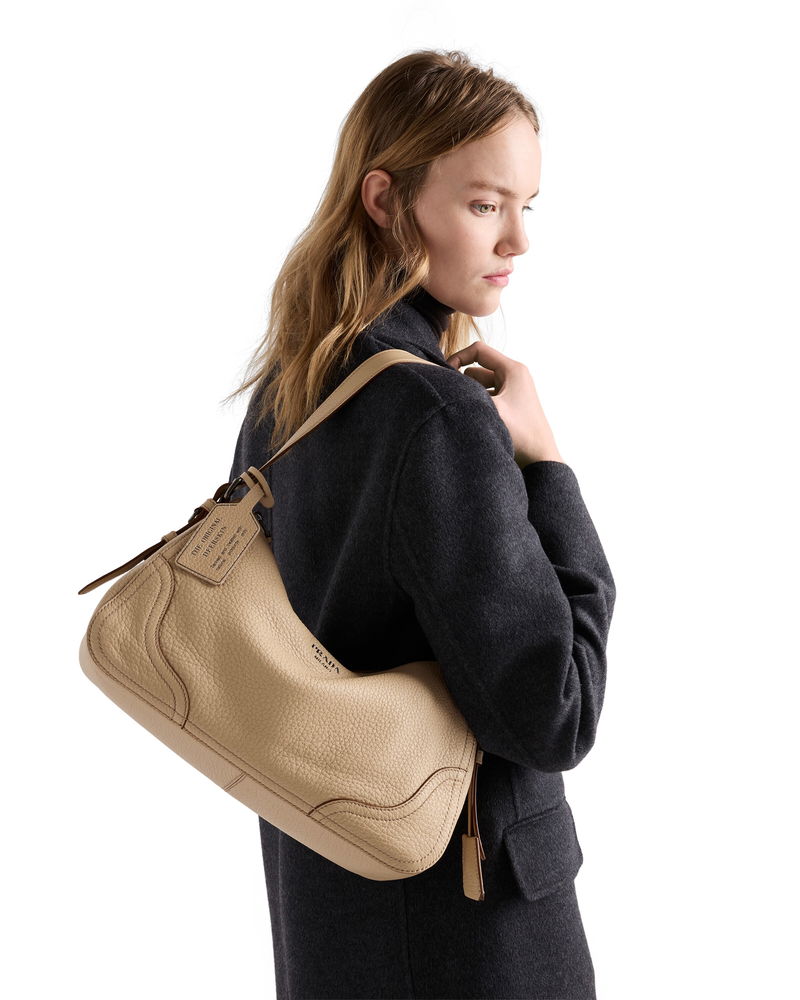 Aimèe Large Leather Shoulder Bag, Woman, Sand Beige