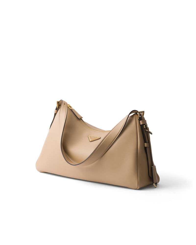 Aimée Large Leather Shoulder Bag, Woman, Sand