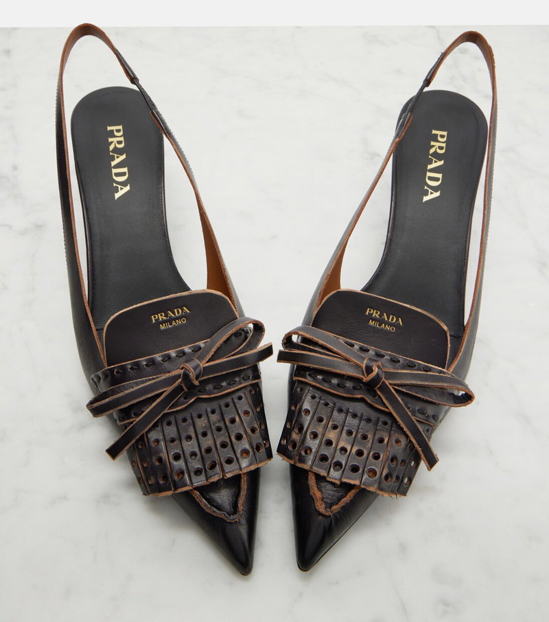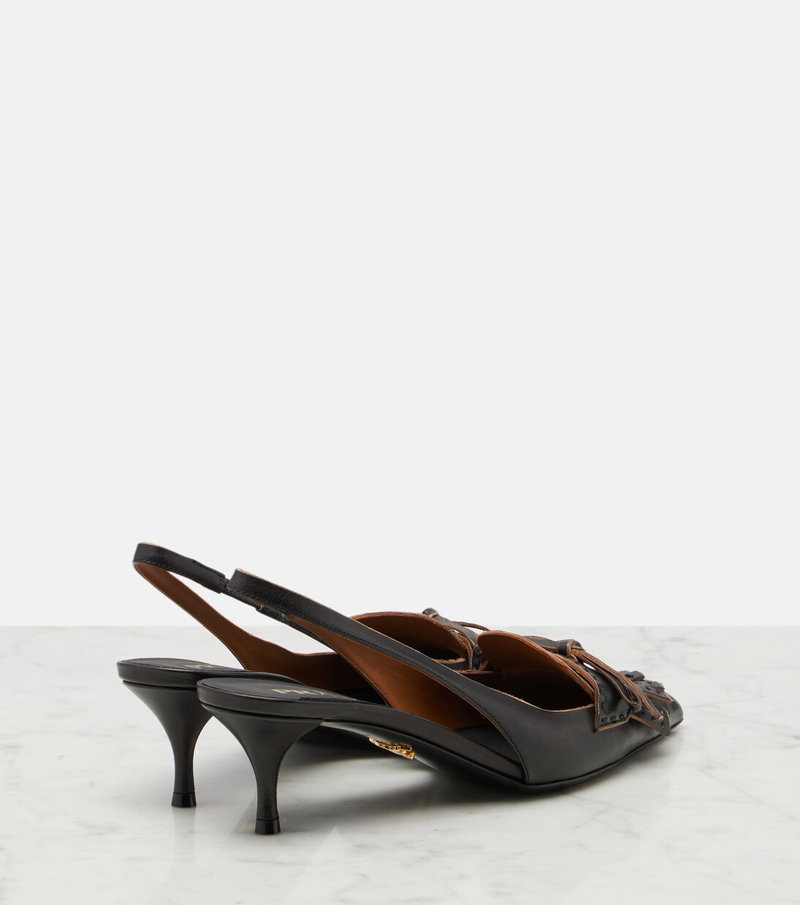 Bow-detail Fringed Leather Slingback Pumps
