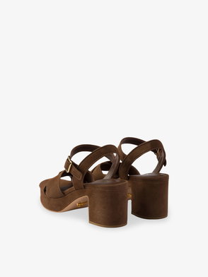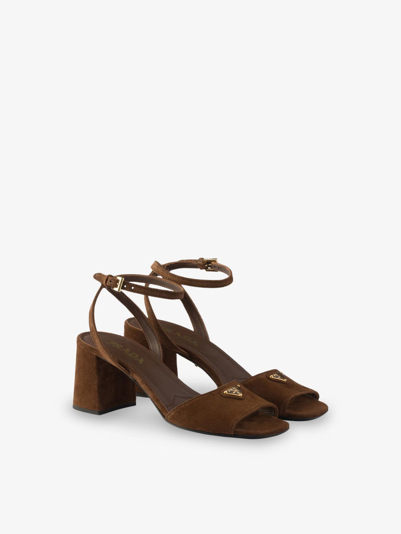 Brand-Plaque Suede Heeled Sandals