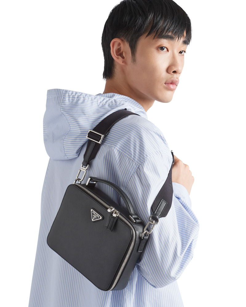 Brique Medium Saffiano Leather Bag, Man, Black