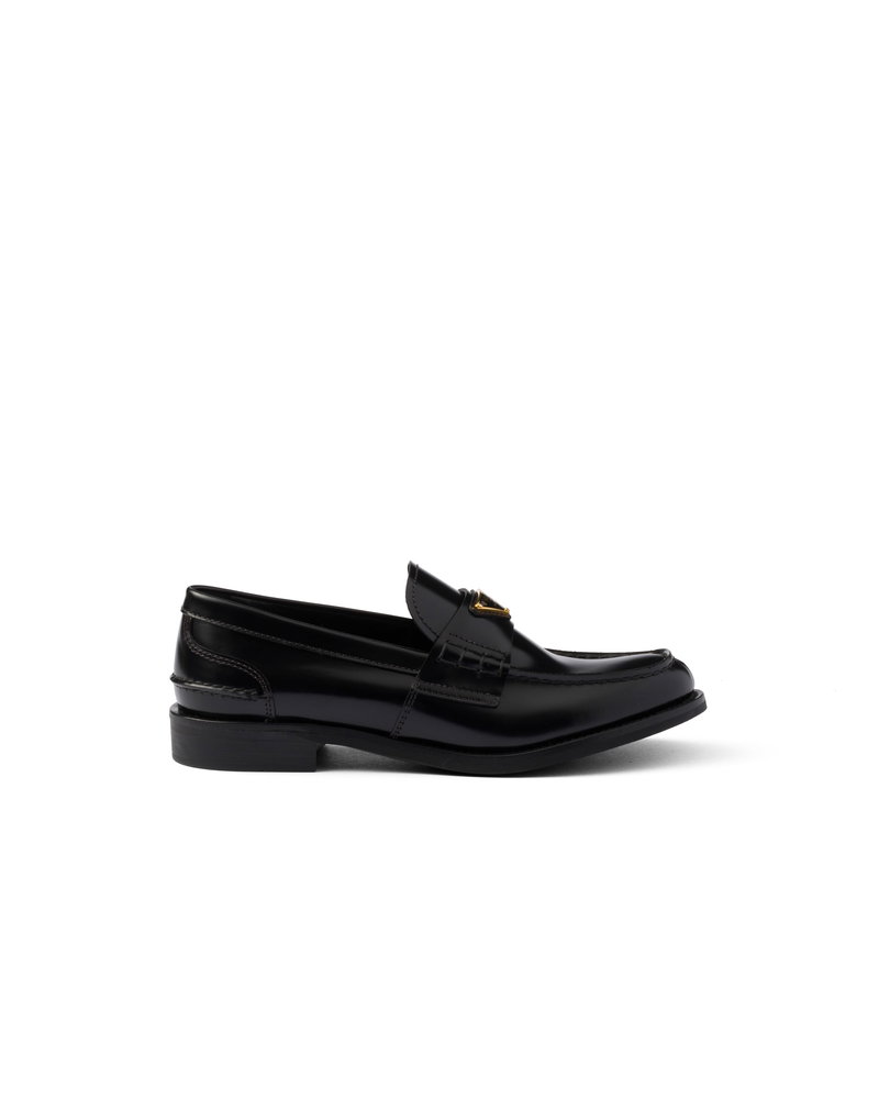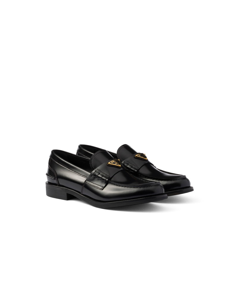 Brushed Leather Loafers, Woman, Black, Size 40,5