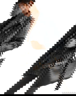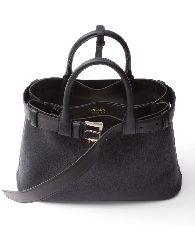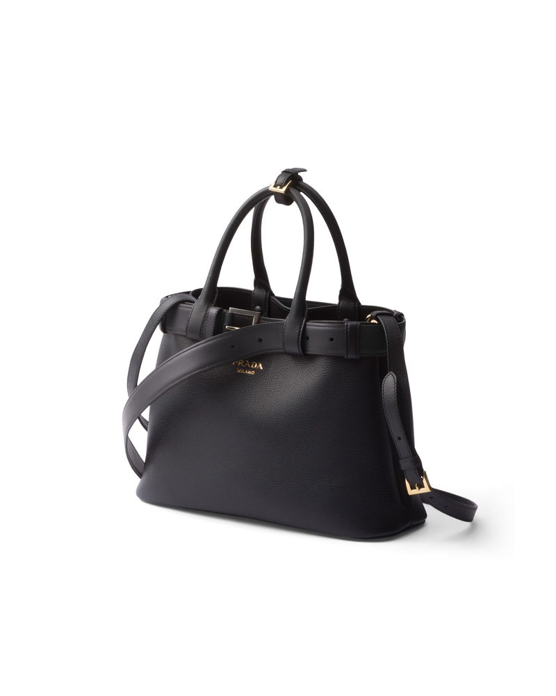 Buckle Small Leather Handbag With Belt, Woman, Black