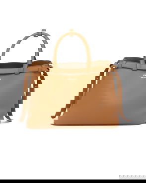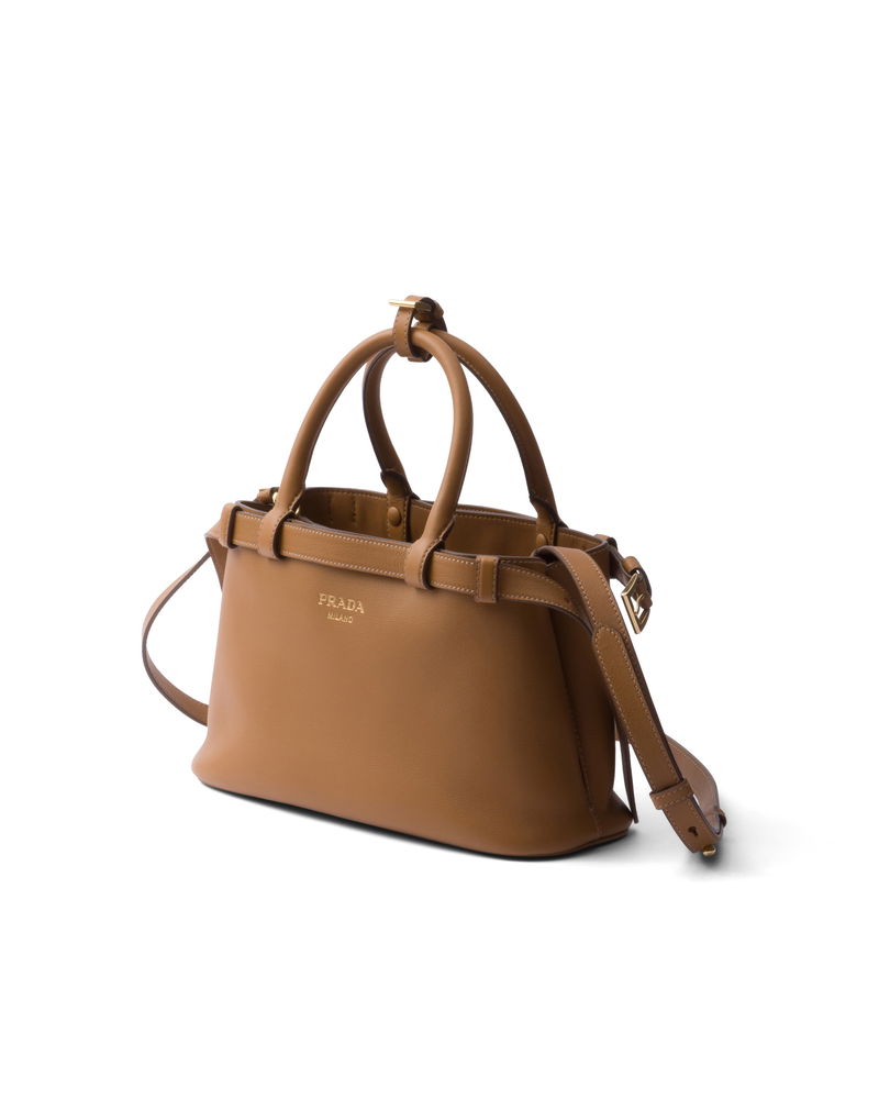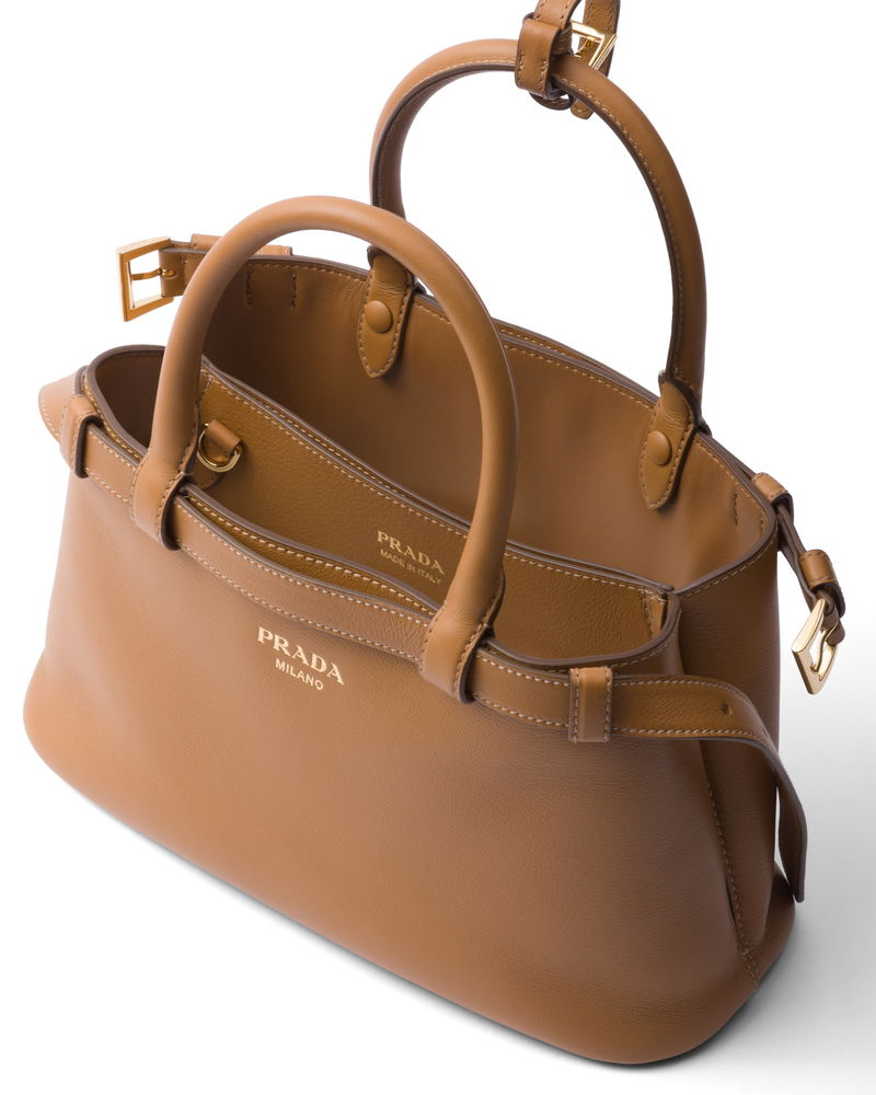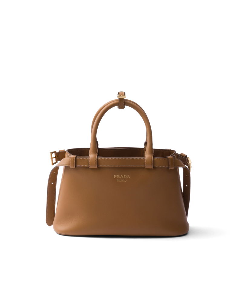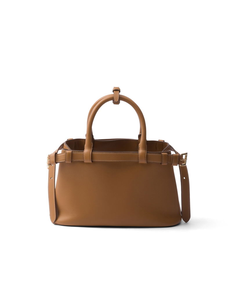 Buckle Small Leather Handbag With Double Belt, Woman, Caramel