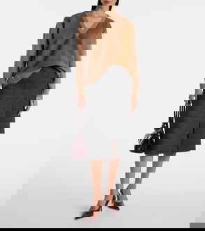 Whether worn as a voluminous outer layer or a chic minidress, this beige vest from Prada will evoke a feeling of chic minimalism. Made from cashmere, the sleeveless design features a classic crewneck and ribbed edges. Style yours with tonal knee-high boots and a blazer.