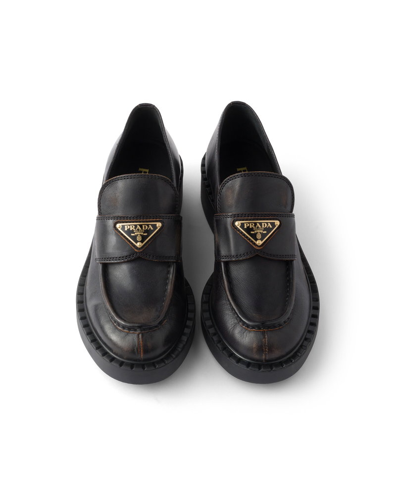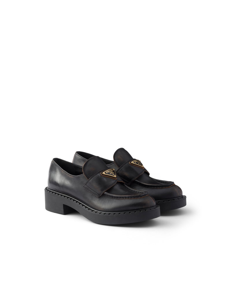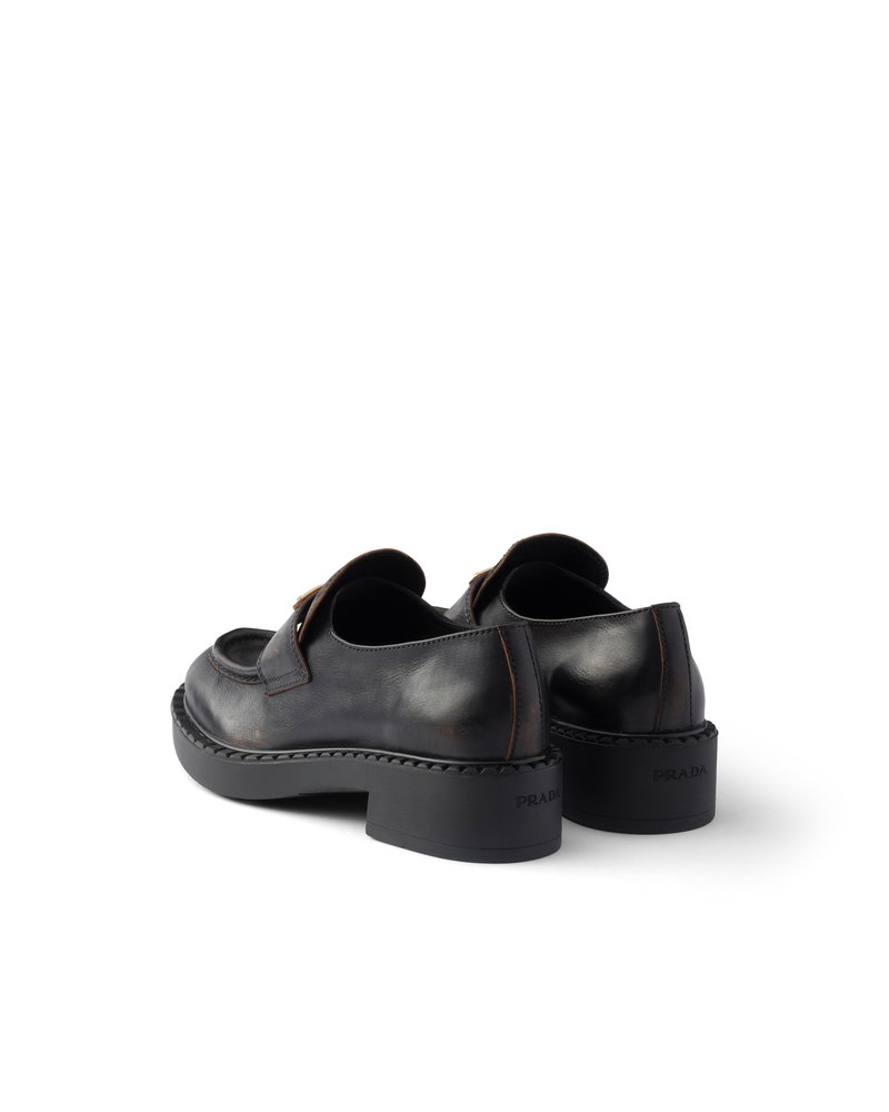 Chocolate Antiqued Leather Loafers, Woman, Black/tan, Size 37