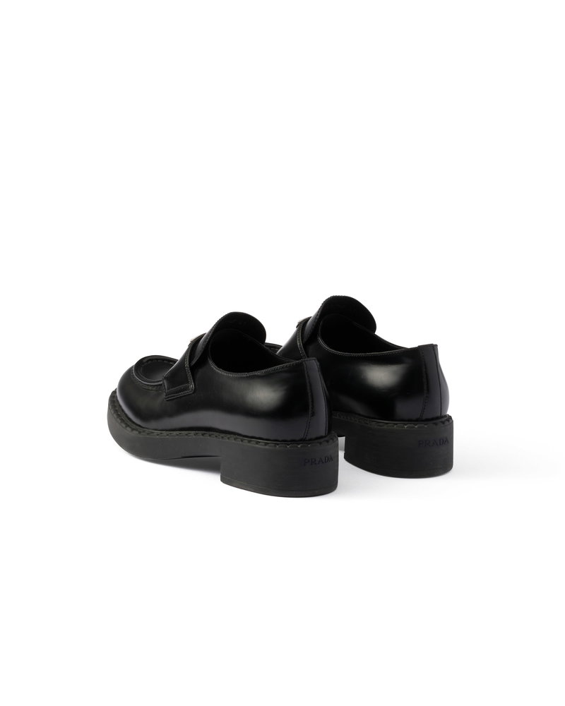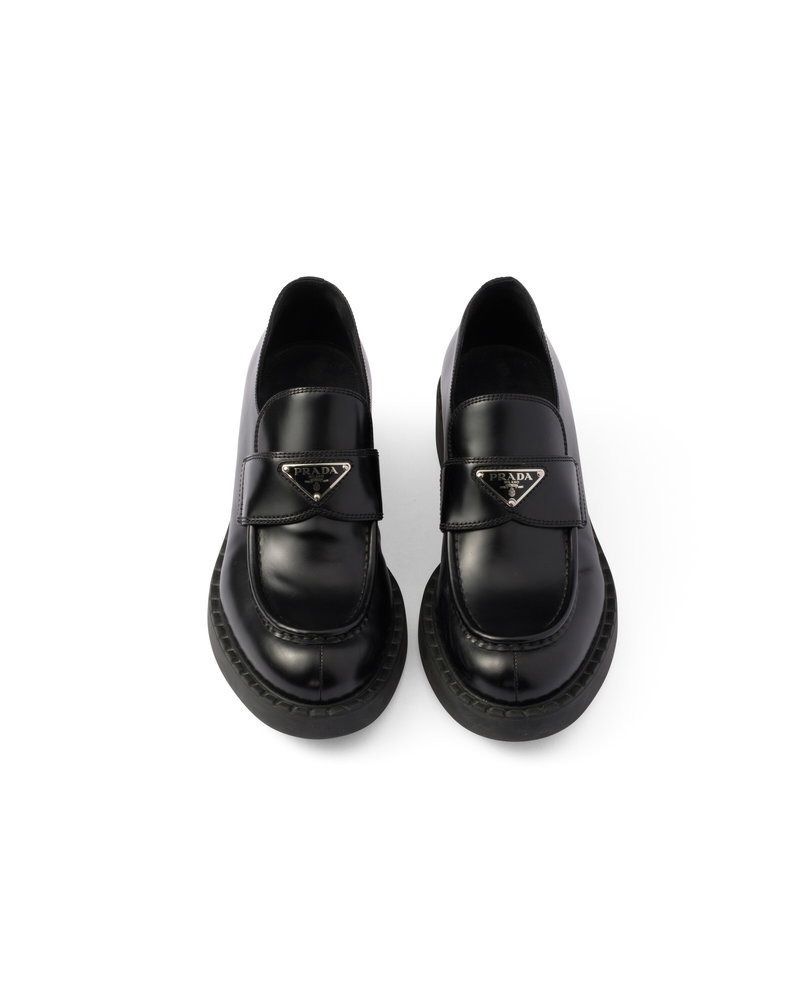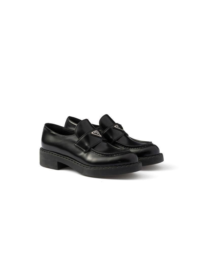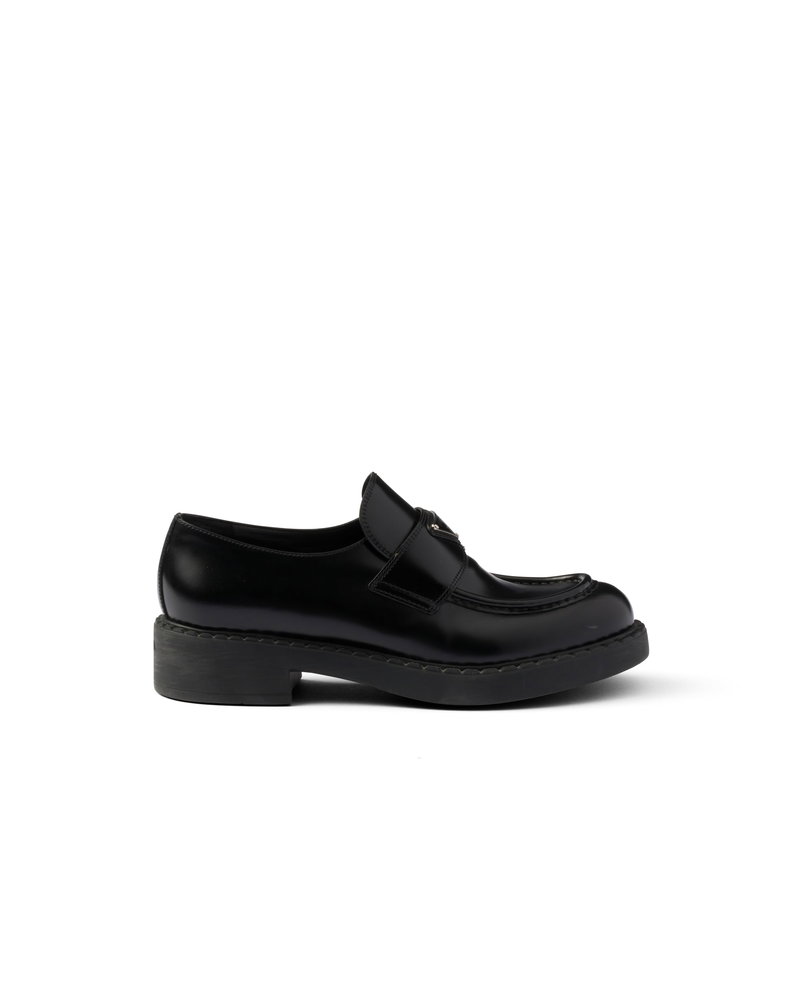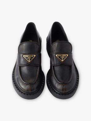 Chocolate Brushed Leather Loafers, Woman, Black, Size 34,5