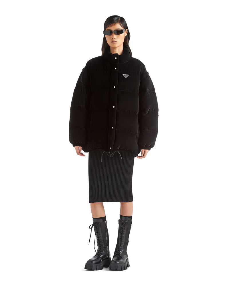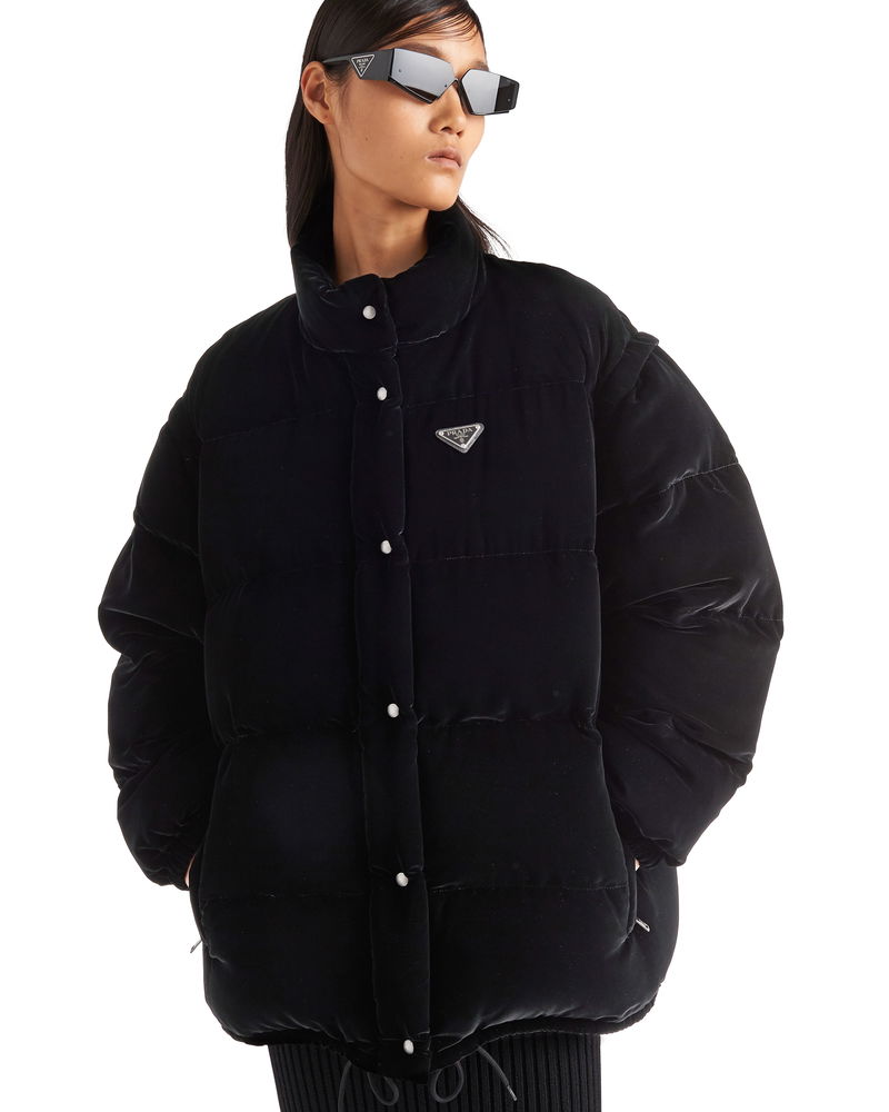 Convertible Velvet Down Jacket, Woman, Black, Size 36