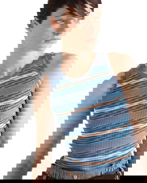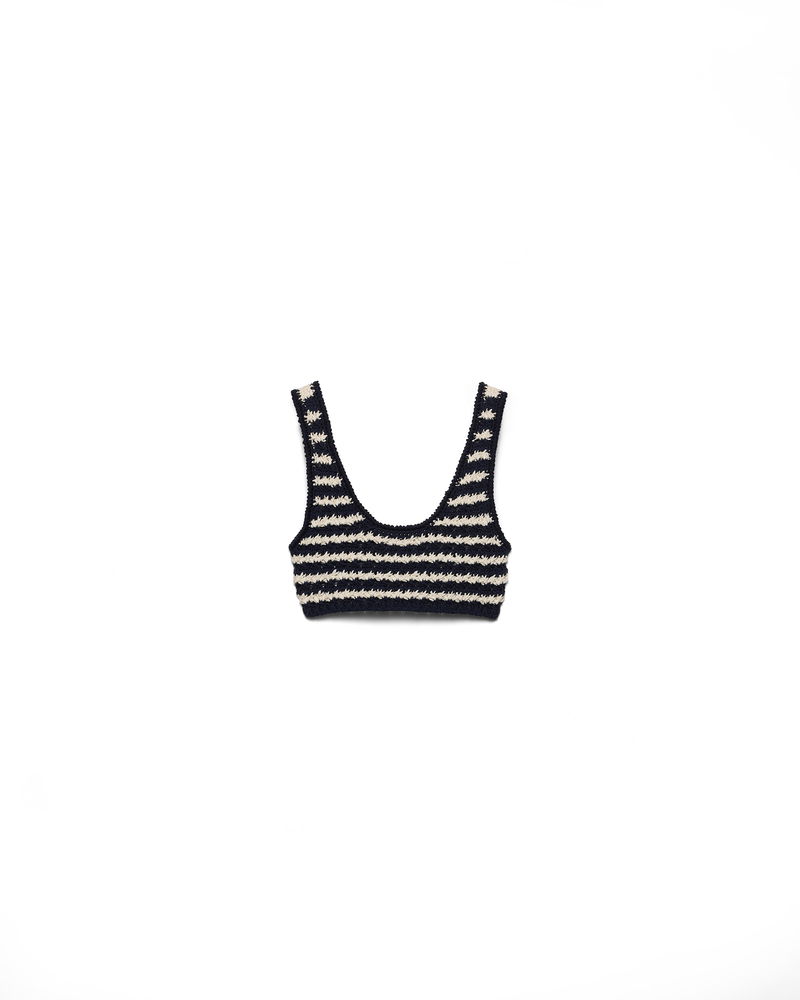 Cotton Crochet Crop Top, Woman, Blue/beige, Size 44