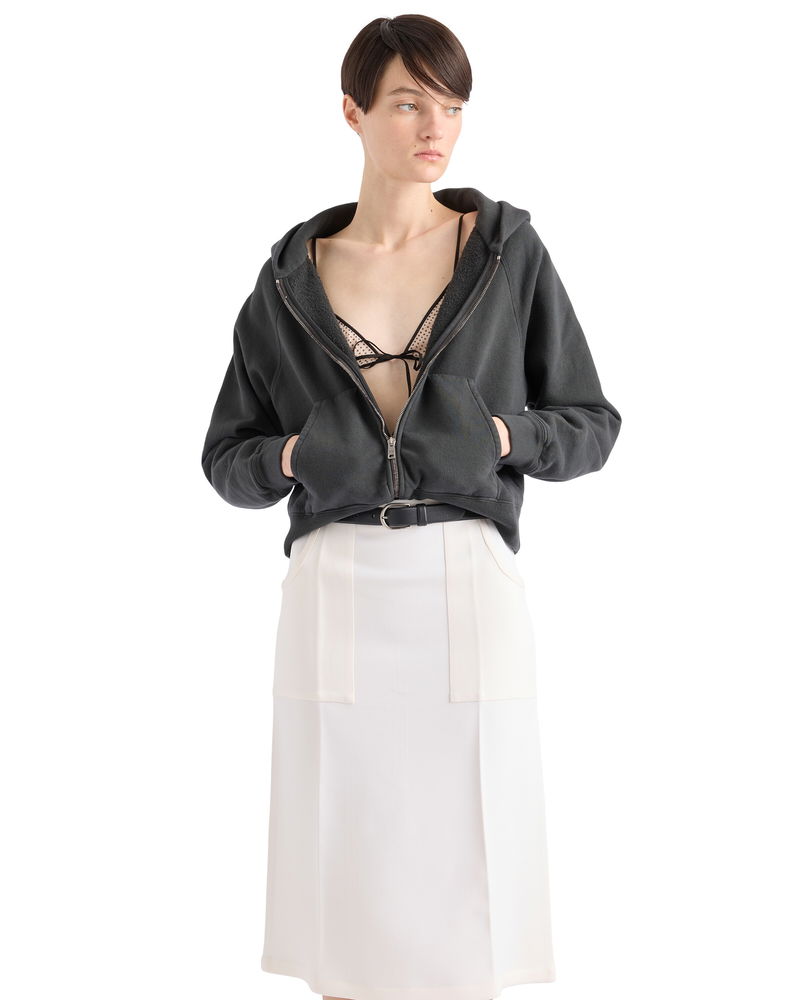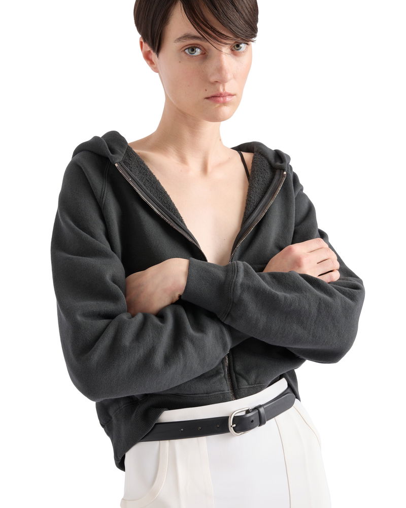 Cotton Zipper Hoodie, Woman, Asphalt Gray, Size XS