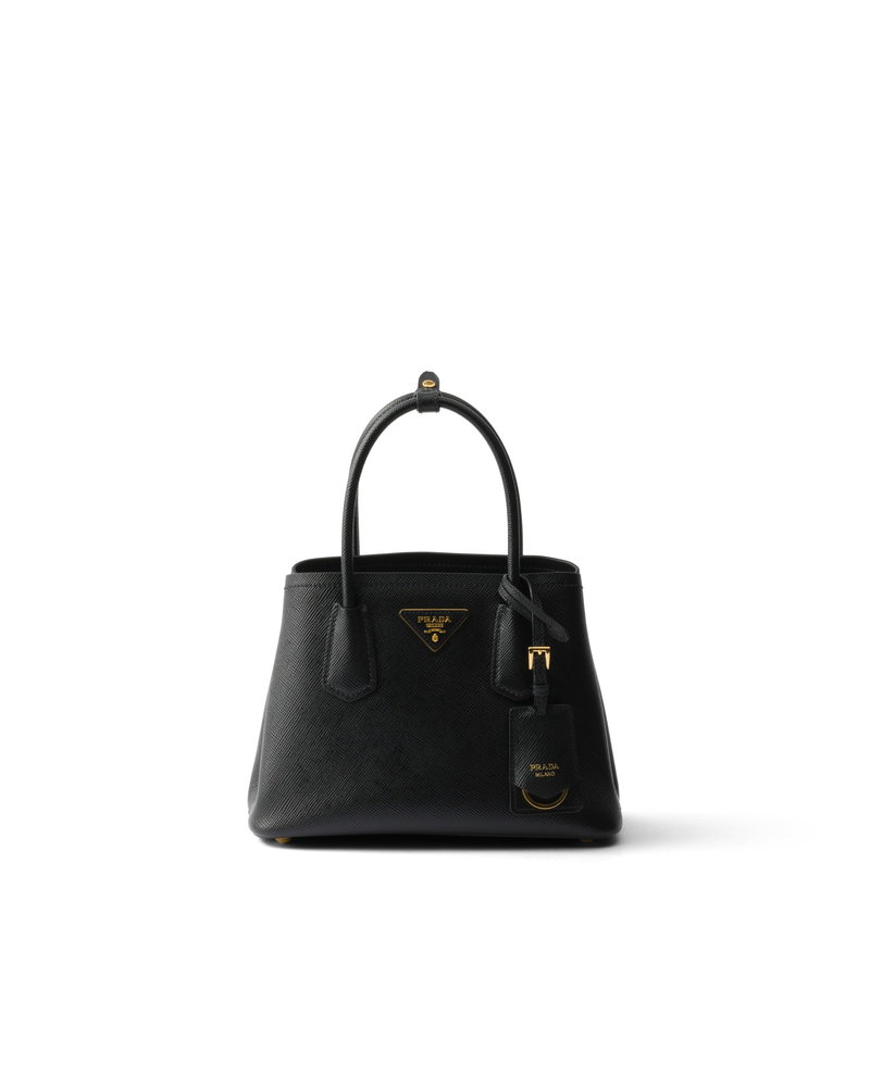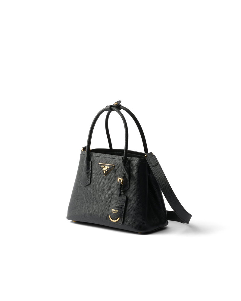 Double Small Saffiano Leather Bag, Woman, Black