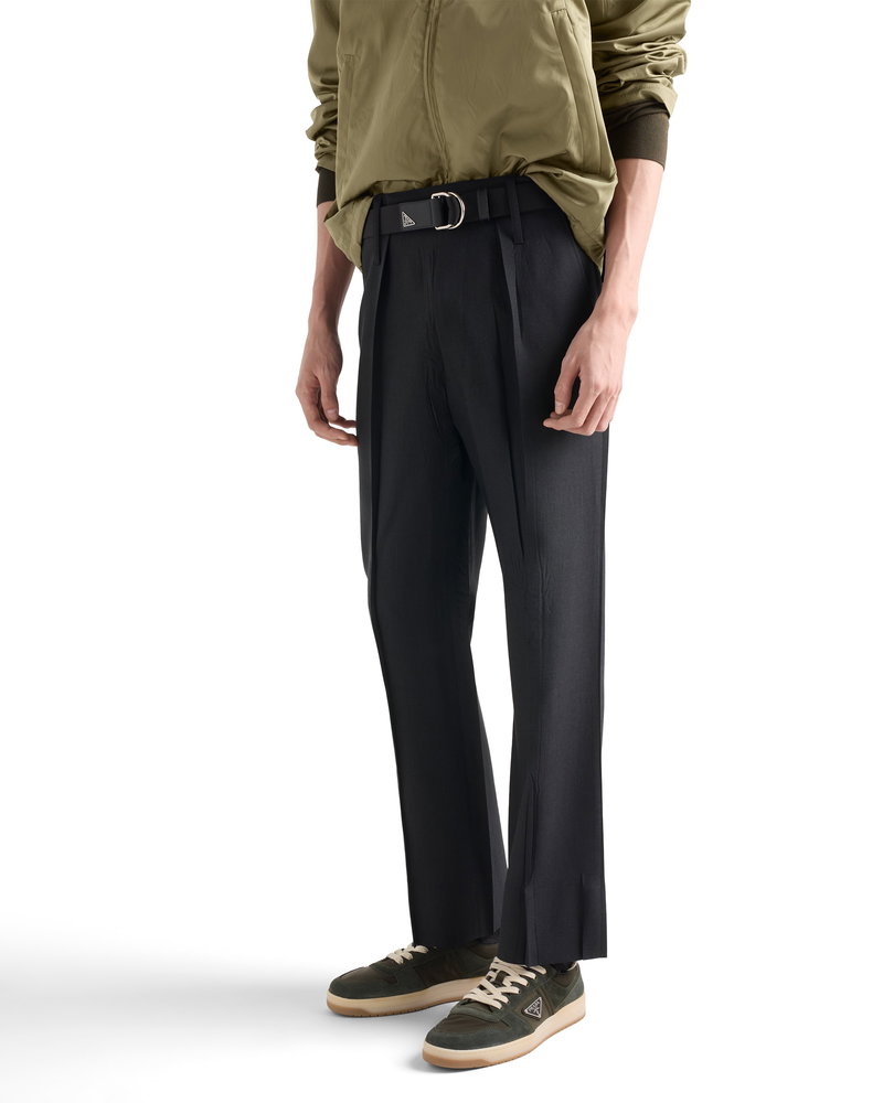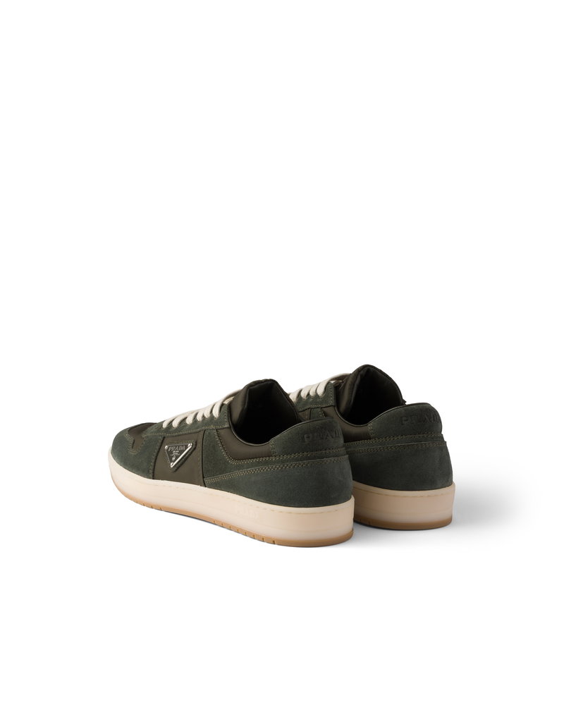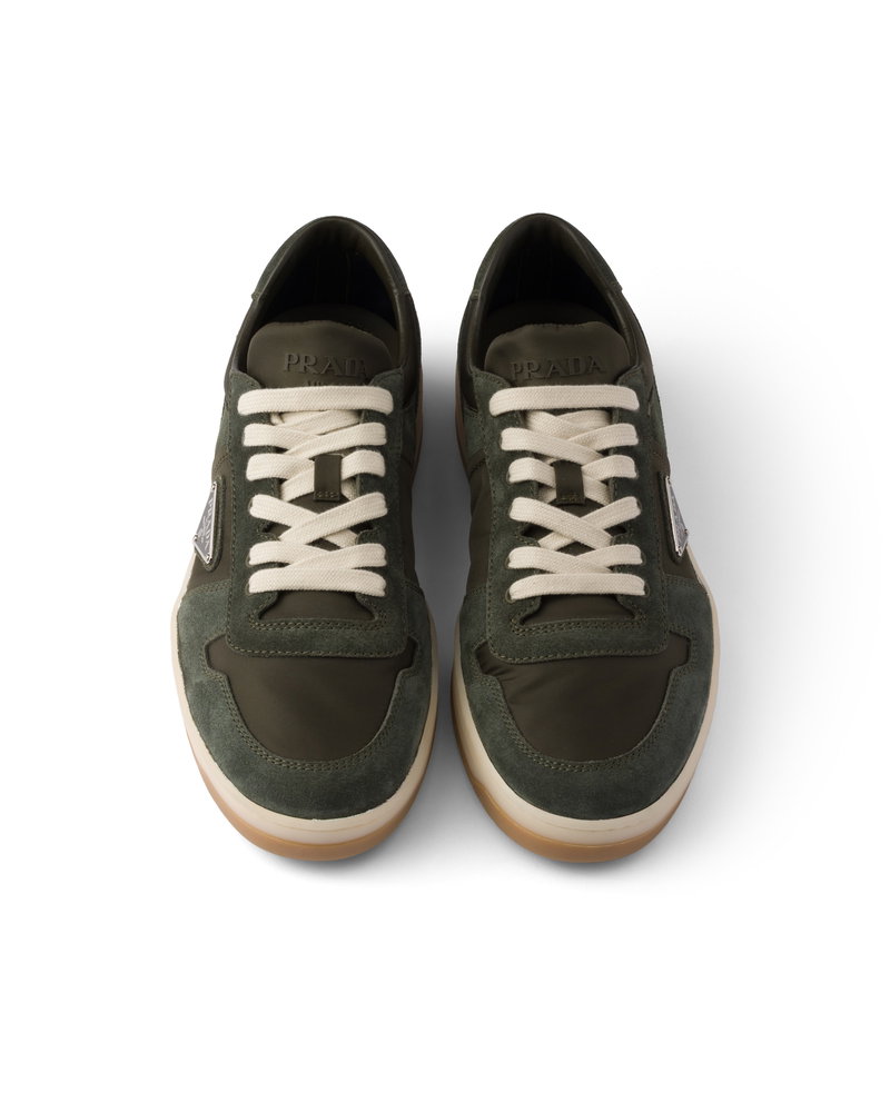 Downtown re-nylon and suede sneakers. With metal eyelets and cotton laces. Upper with enameled metal triangle logo.