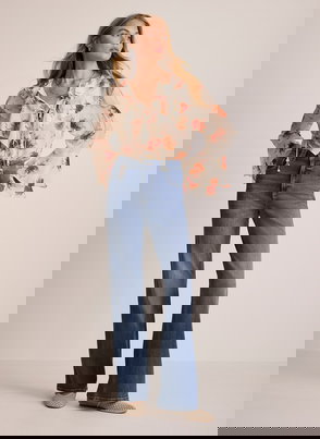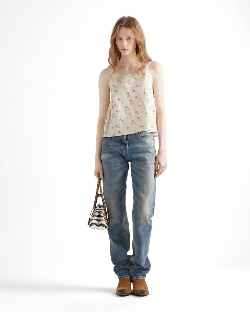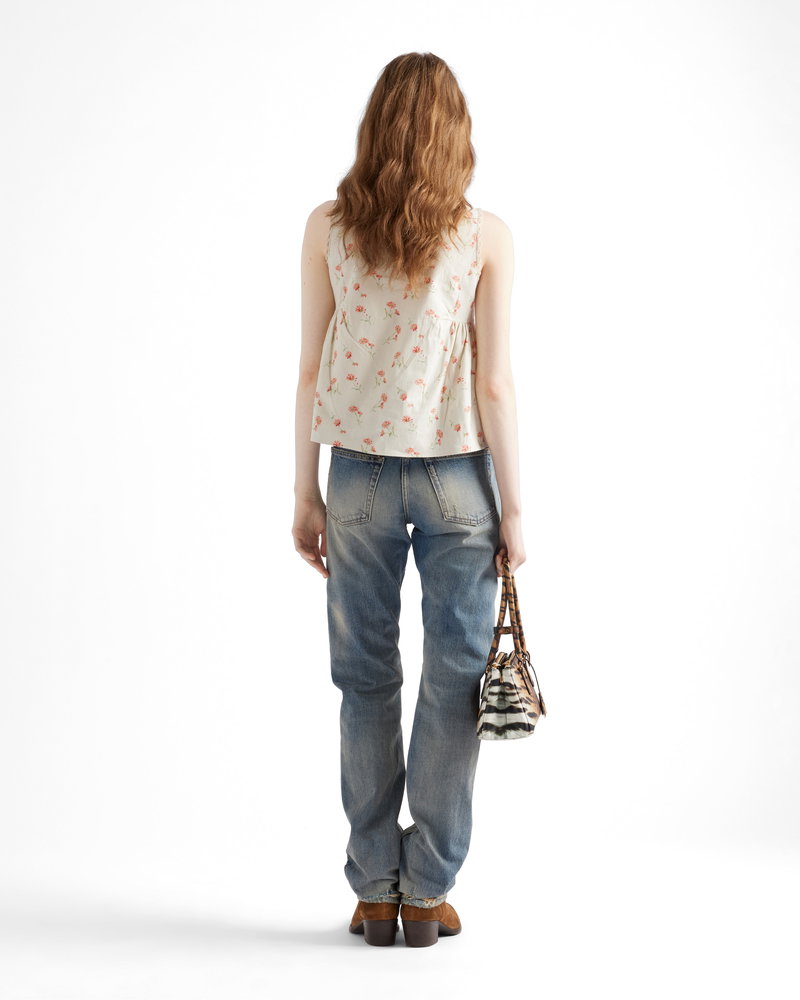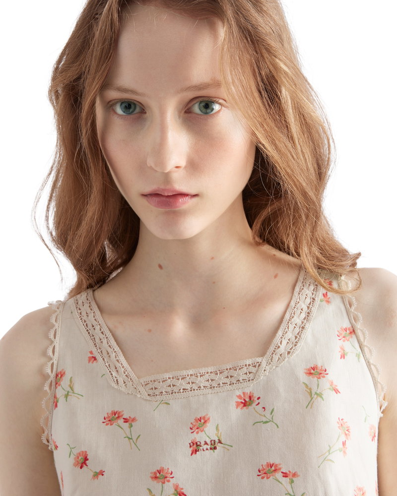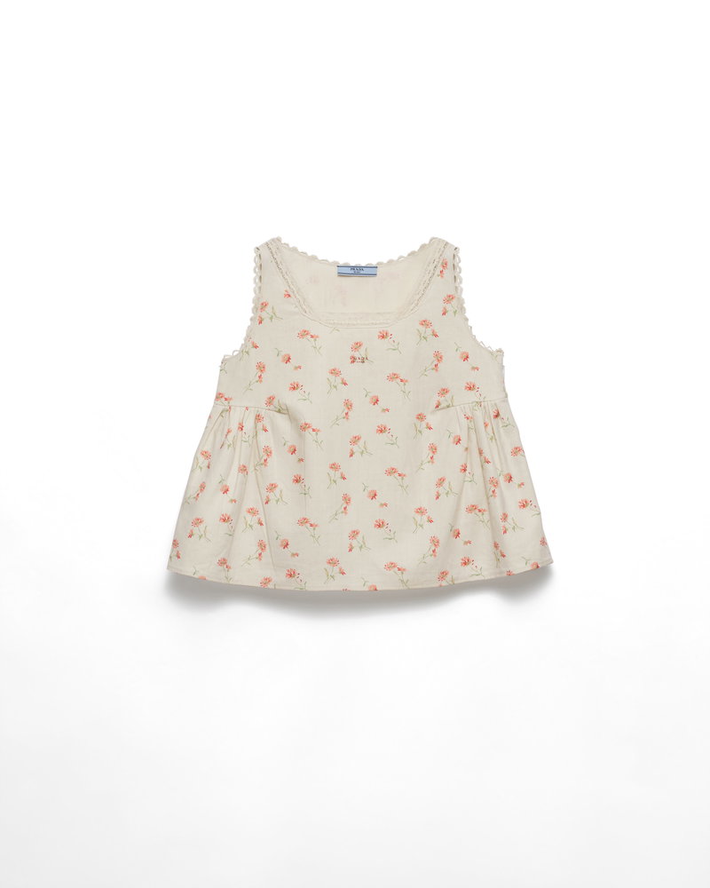 Embroidered Floral Print Linen Top