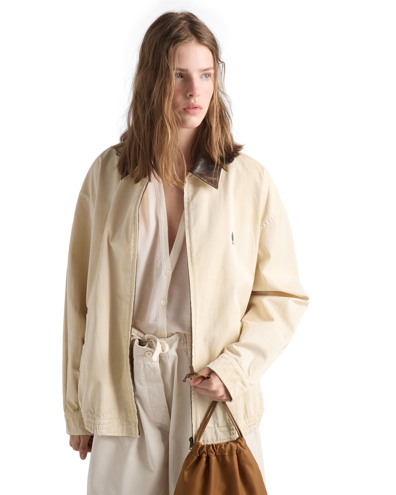 Embroidered Garment-Dyed Old Gabardine Blouson Jacket