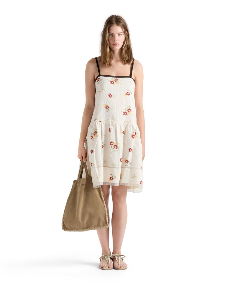 Embroidered linen mini-dress.