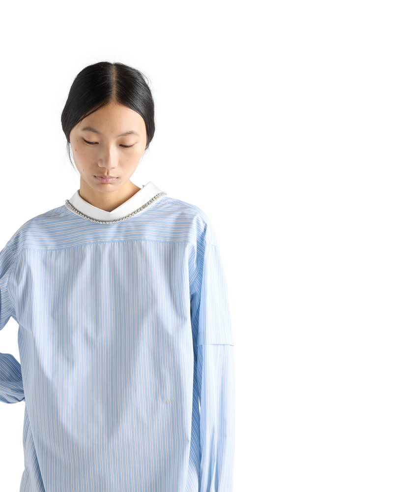 Embroidered Striped Poplin Top