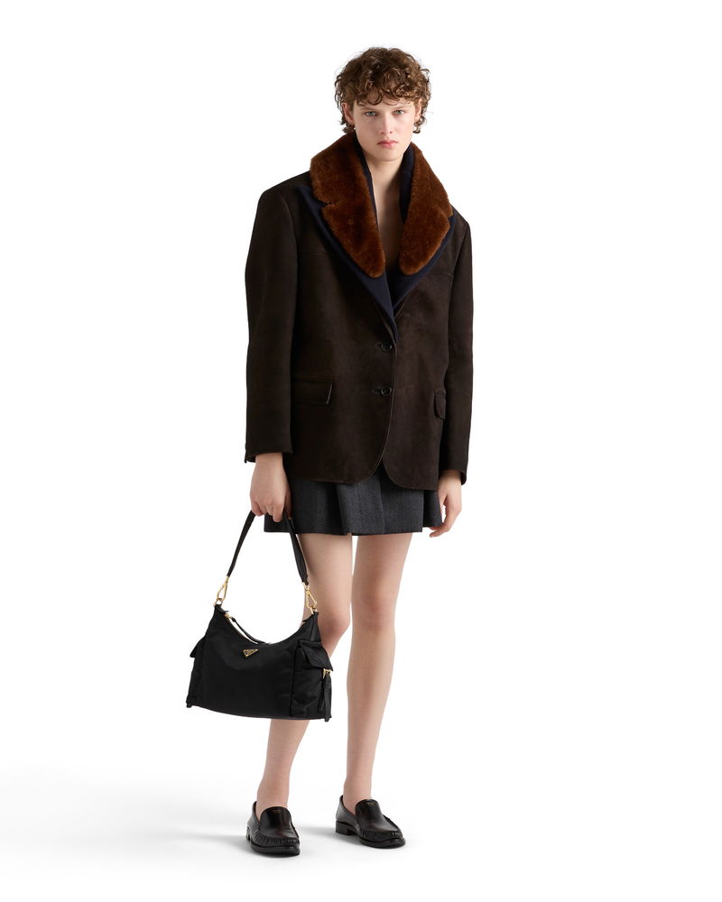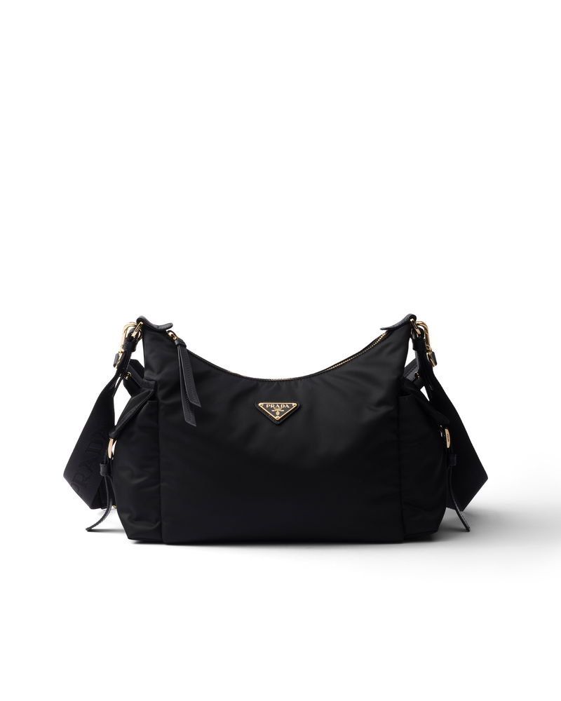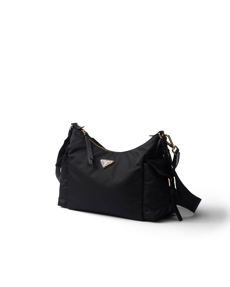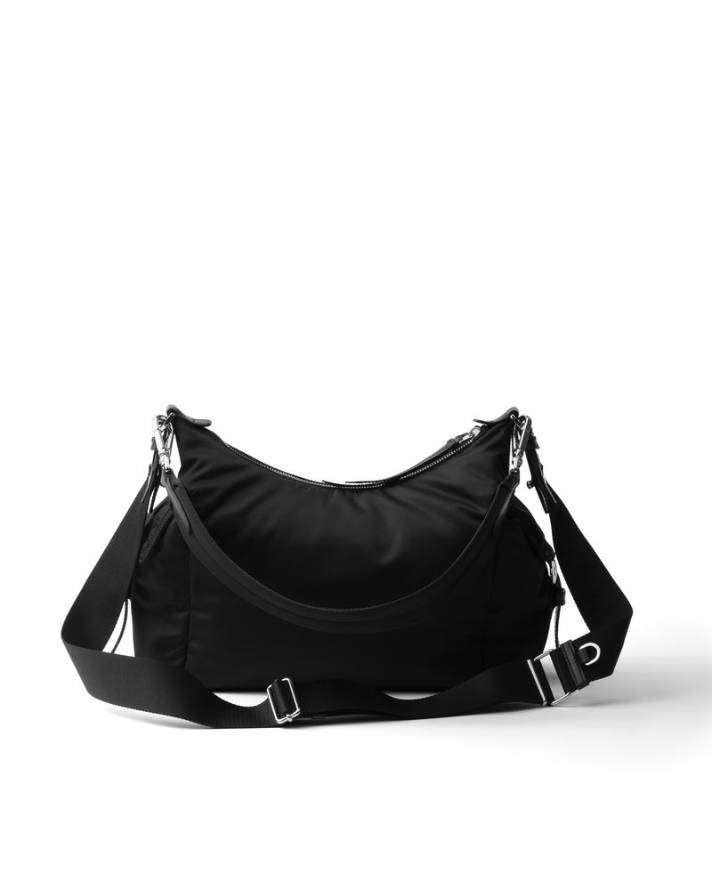 Explore Large Re-nylon And Leather Bag, Woman, Black